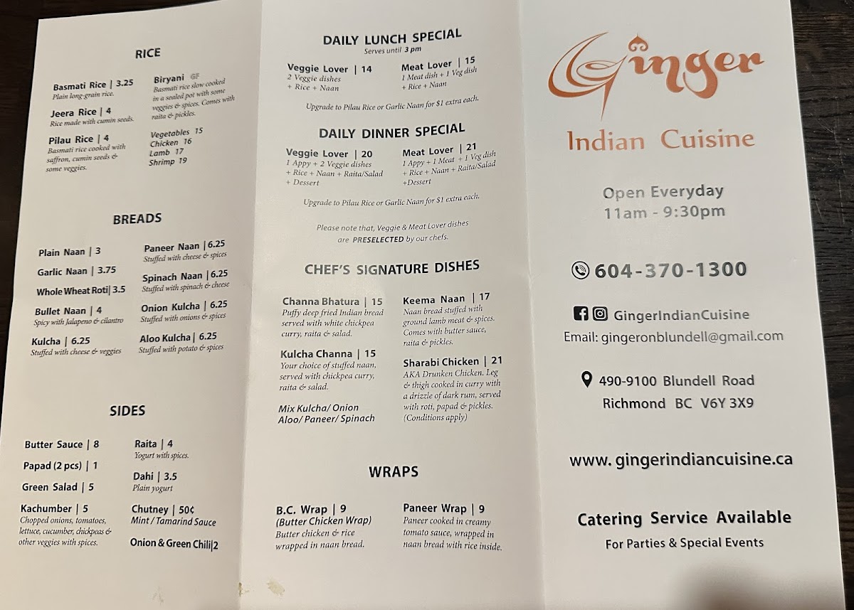 In conclusion, if you find yourself in Richmond, BC, don't miss out on the chance to experience Ginger Indian Cuisine. With its captivating flavors, cozy atmosphere, and exceptional service, it's a delightful escape into the rich world of Indian culinary art. Bring your friends, family, or a loved one, and prepare for a feast that will leave you craving more!