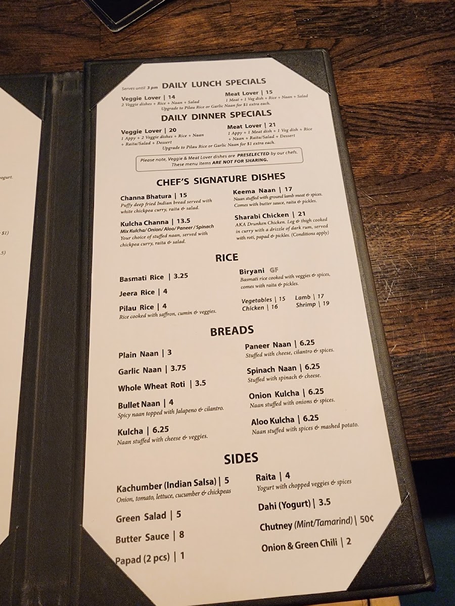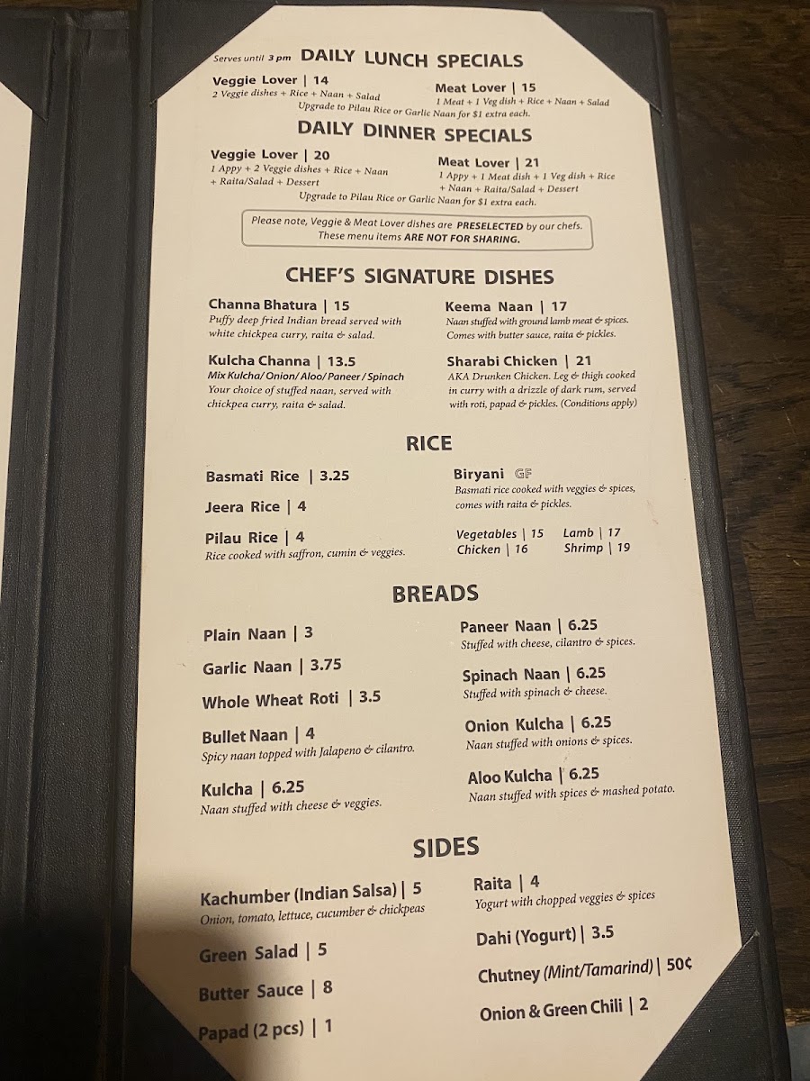 At Ginger Indian Cuisine, the menu boasts a delightful array of dishes that cater to every palate. One of the standout offerings is the Keema Naan—a delectable naan stuffed with spiced ground lamb meat, perfectly complemented by rich butter sauce and tangy raita for just CA$18.00. For those who enjoy bold flavors, the Sharabi Chicken, affectionately known as Drunken Chicken, tantalizes the taste buds with its unique preparation. ) Another must-try is the Channa Bhatura, featuring puffy deep-fried Indian bread paired with a heavenly chickpea curry, all for CA$16.00. The Channa Kulcha and Bullet Naan, topped with jalapenos, further elevate the dining experience, showcasing the rich tapestry of flavors woven throughout Indian cuisine.